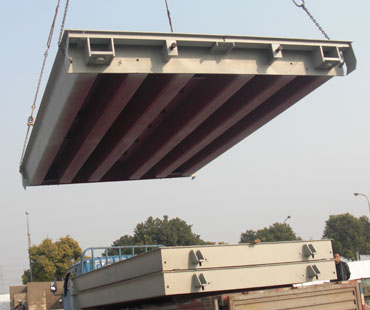 3、國際通用、U型鋼組焊、拋丸防腐處理、高強度秤臺 3.1、簡述: 秤臺由于其體積和重量都比較大,安裝的工作量也非常大,價值也比較高,出了問題在端時間內難以排除,故其使用年限的長短將直接影響用戶的利益,而在秤臺所有的要求中,除了材料要用對、用到位外,非常關鍵的就是表面的防腐效果如何,如果防腐處理不過關,秤臺在使用很短一段時間后鐵銹就會出來,也就說明,秤臺開始生銹腐蝕了,這樣秤臺勢必會在比較短的時間內發生斷裂、坍塌等事故,給用戶造成損失,故秤臺的選用一定要慎重! 本公司汽車衡鋼結構秤臺采用國際標準的U形冷彎型鋼組焊,屬超高強度秤體,全部構件制作工藝先進,質量穩定可靠。完全實現了模塊化、系列化和標準化生產,體系列標準尺寸有5m,6m,7m三種,可以根據稱量的大小,自由組合成各種規格、多種稱量的秤臺。